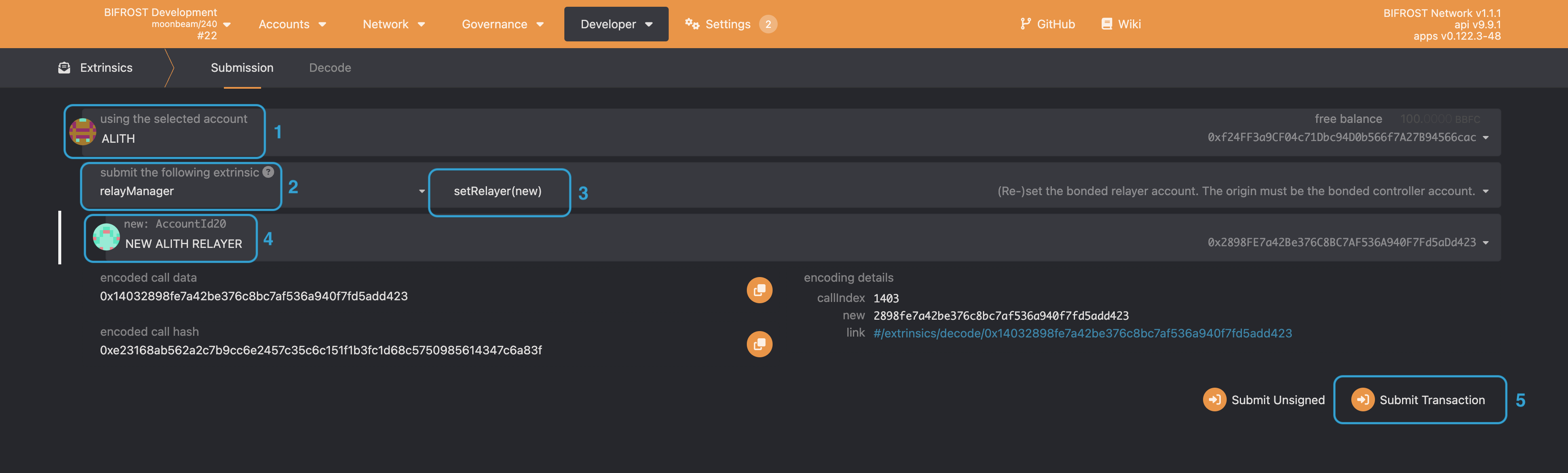A new relayer account must be prepared contained with enough funds for cross-chain actions. This new account will later be replaced from your previous account.