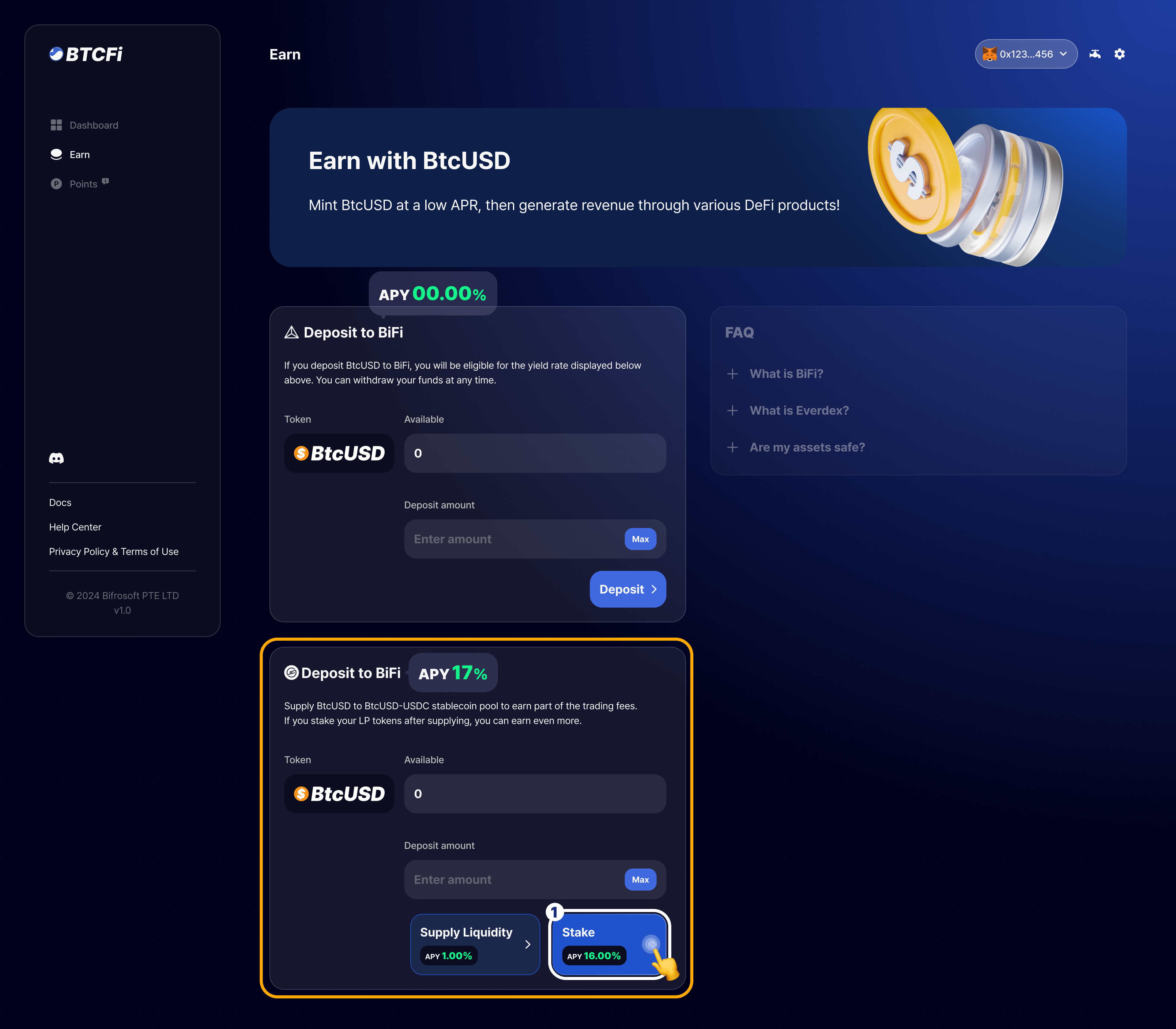 After providing liquidity, you can stake your newly received LP tokens to receive additional token rewards. Complete the following steps to earn even more on your investment!&#x20;