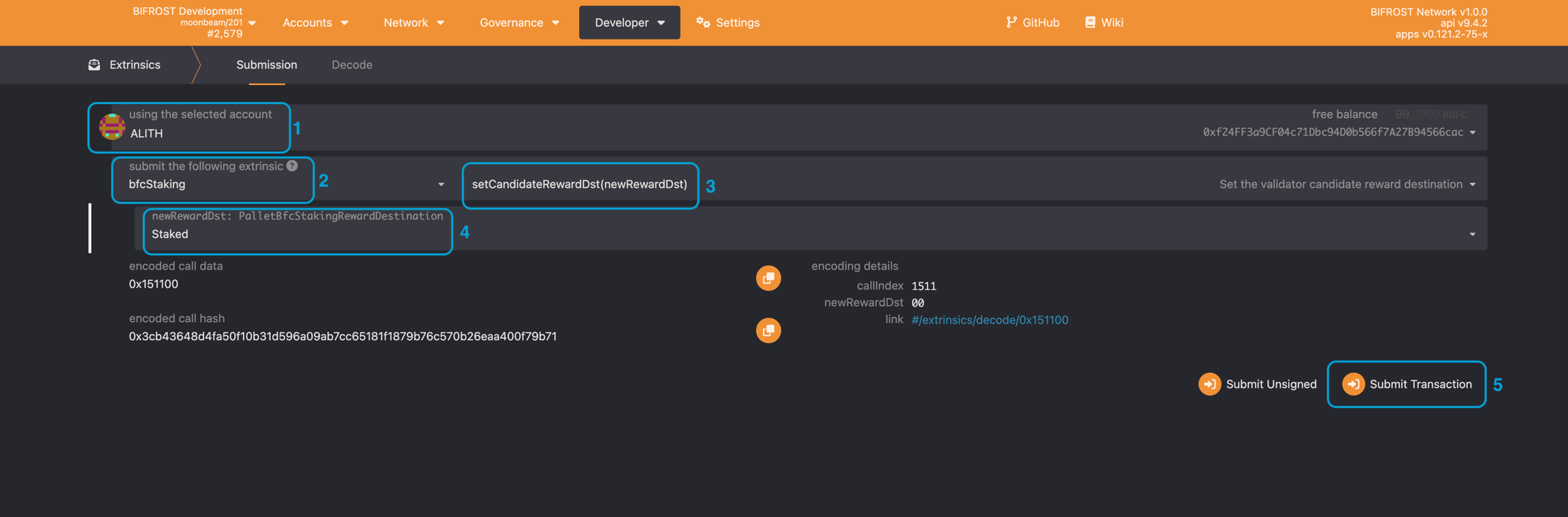 "setCandidateRewardDst" 익스트린식을 선택합니다.