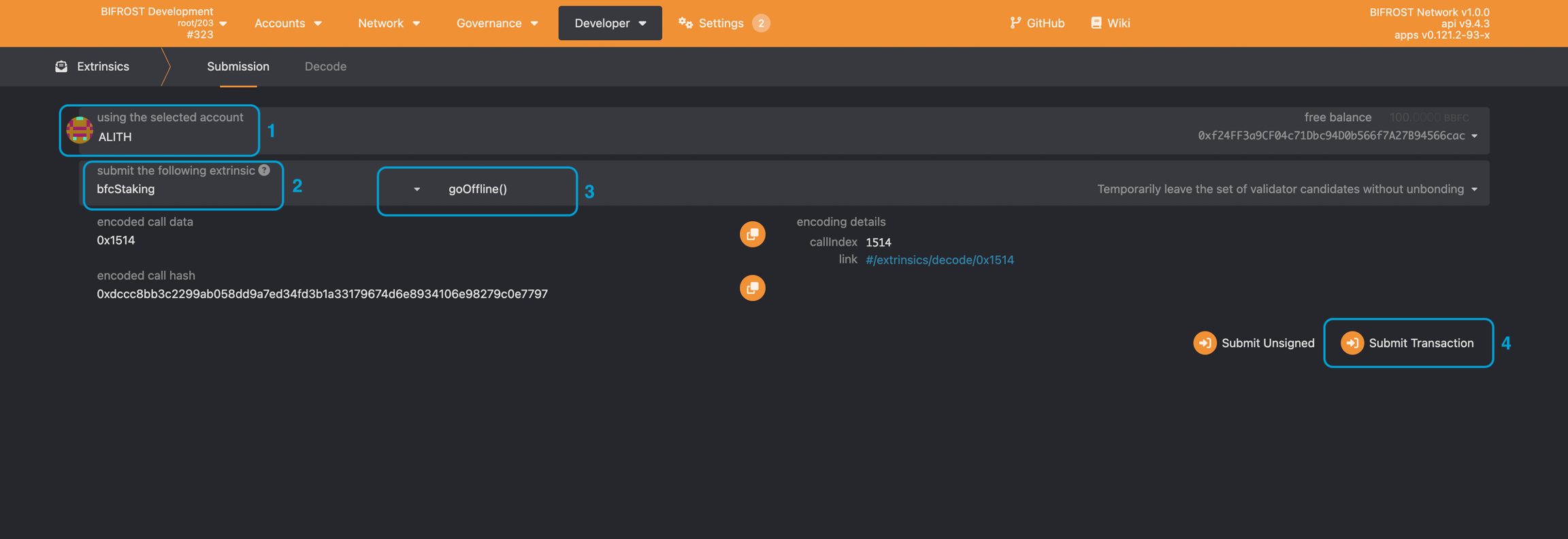 자체 본딩을 해제하지 않고 일정 기간 동안 검증자 활동을 일시 중지하려면 노드 상태를 오프라인으로 변경할 수 있습니다. 오프라인 상태로 전환할 때 다음 사항을 숙지해야 합니다.