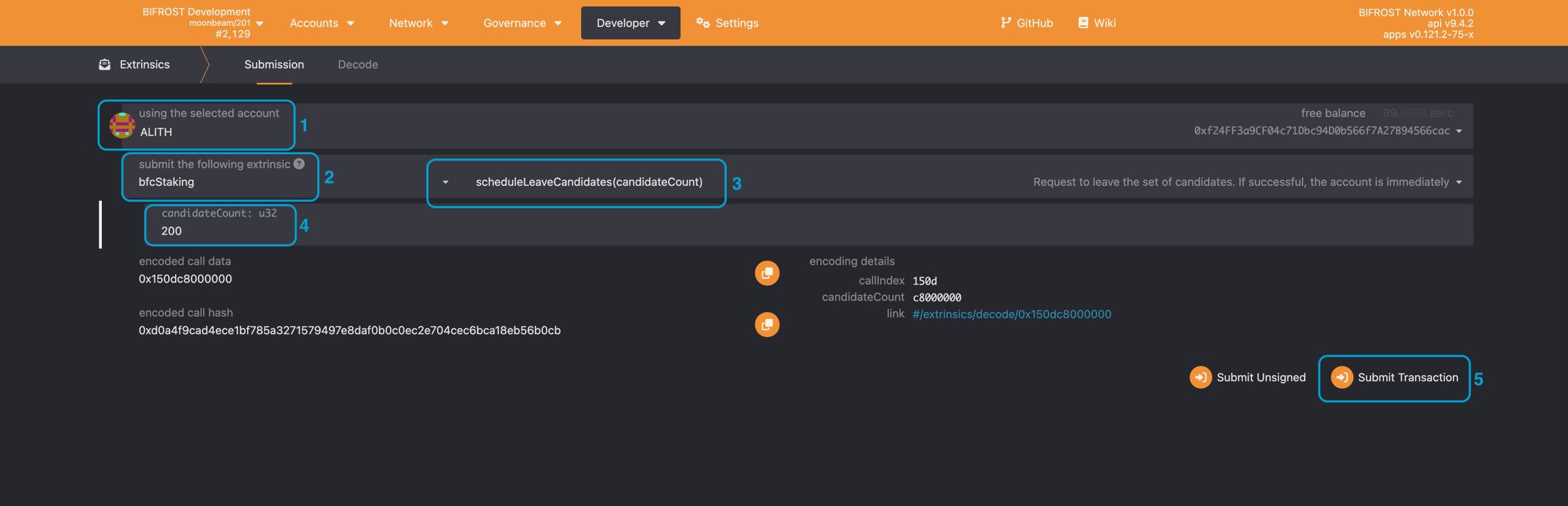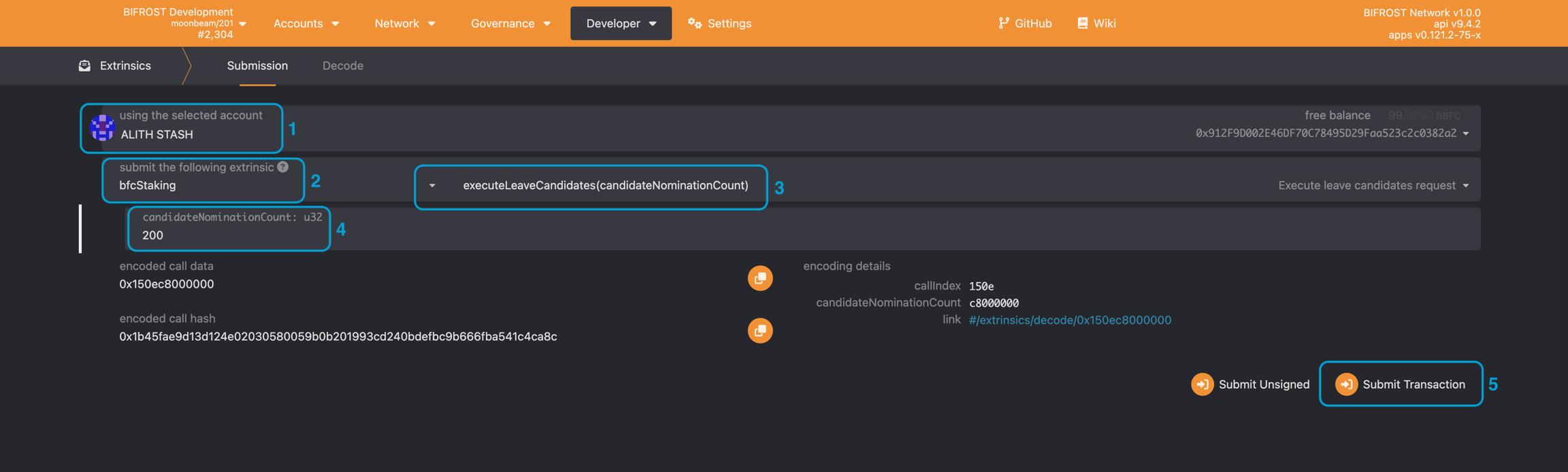 "executeLeaveCandidates" 익스트린식을 선택합니다.