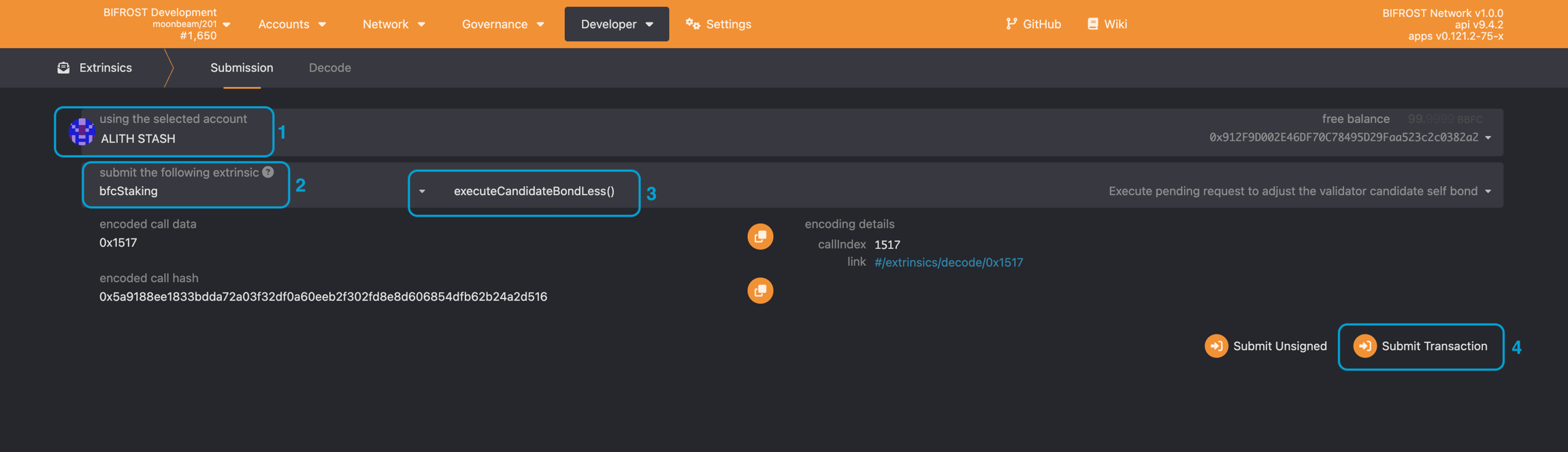 "executeCandidateBondLess" 익스트린식을 선택합니다.